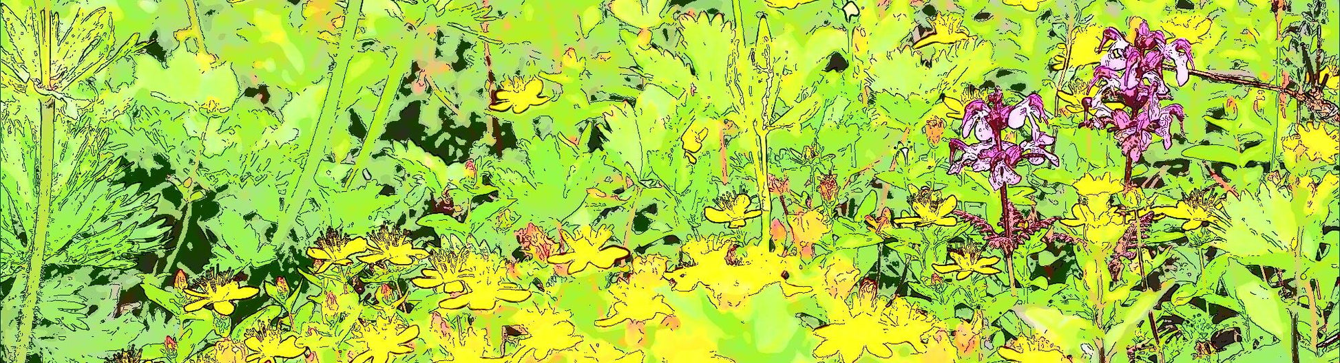 野に咲く花・山野草 ポーチ【ヨツバシオガマとシナノオトギリ】(ナチュラル)