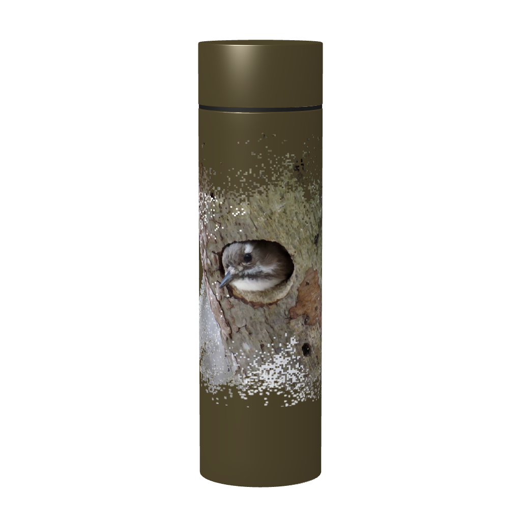 巣から顔を出すコゲラをデザインした、シンプルな形状と普段使いしやすい「シンプルサーモステンレスボトル 370ml」。