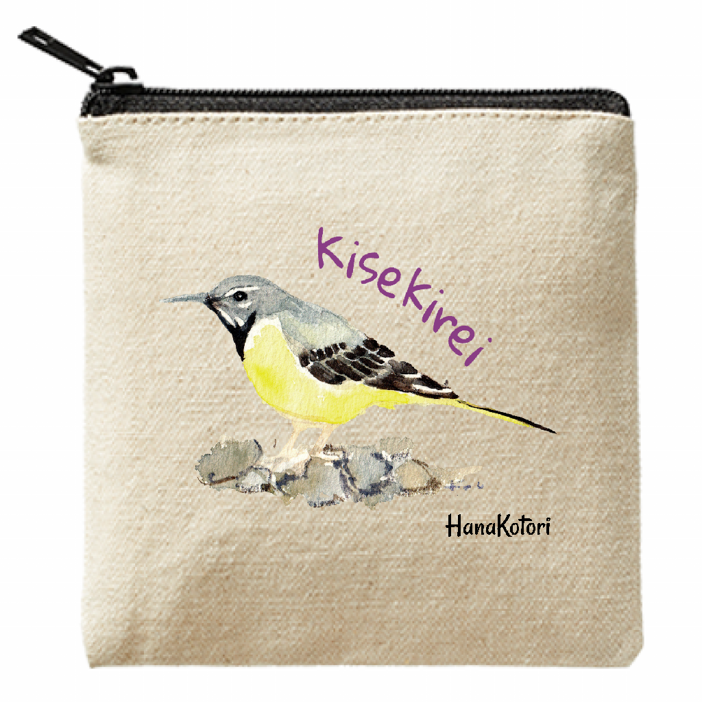 ライトキャンバスフラットポーチ(SS)は、華やかなキセキレイのイラストが映える、魅力的なポーチです。