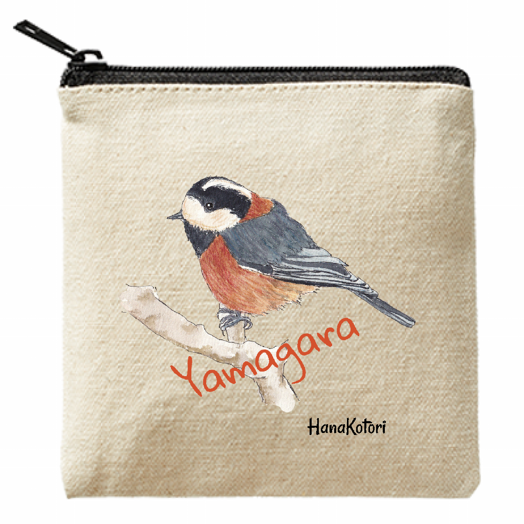 ライトキャンバスフラットポーチ(SS)は、エレガントなヤマガラのイラストが映える、魅力的なポーチです。