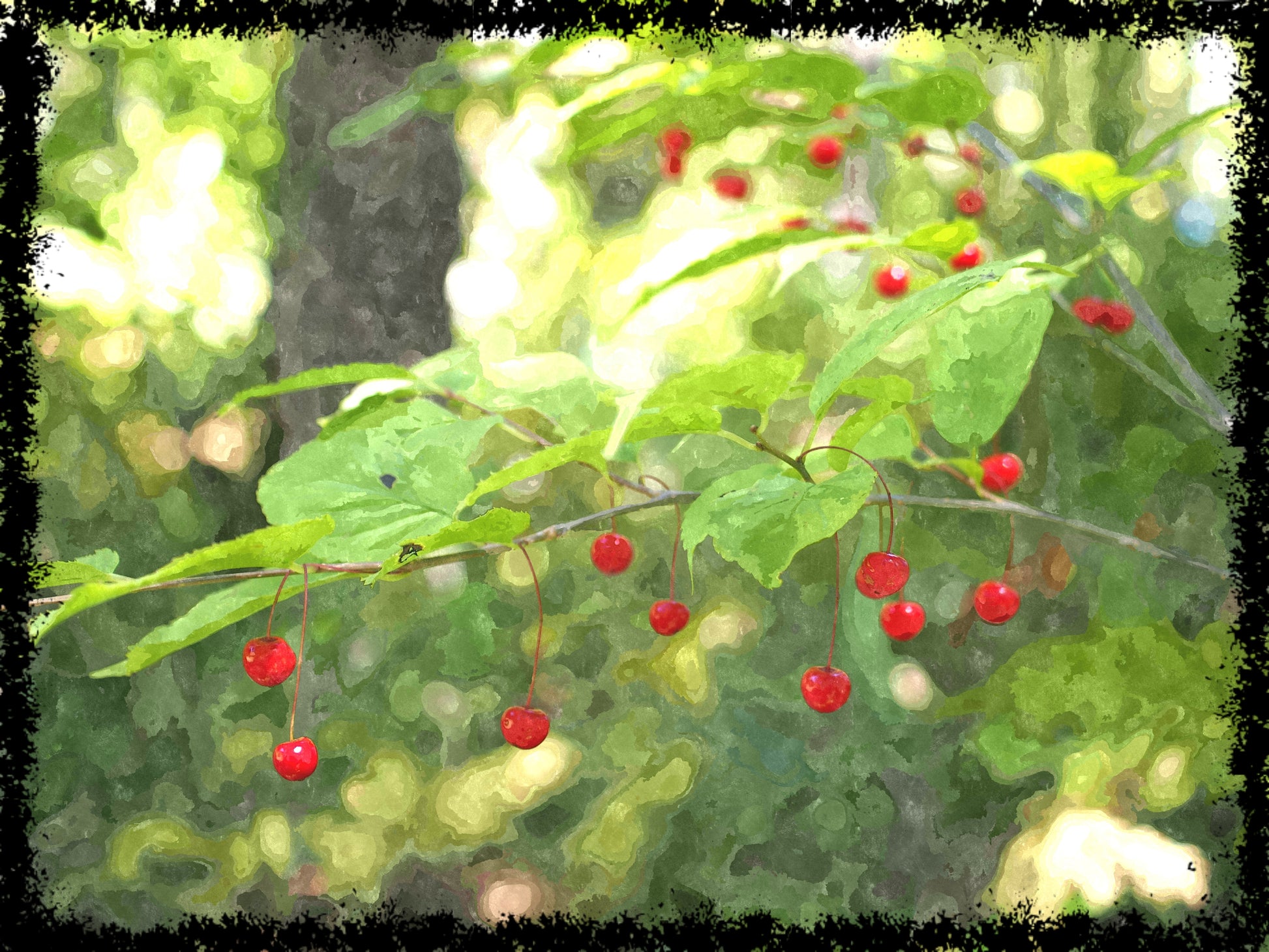 秋の森で出会う、ちいさな宝石のようなフウリンウメモドキ。 その愛らしい姿を、やわらかな水彩画でポーチに描きました。