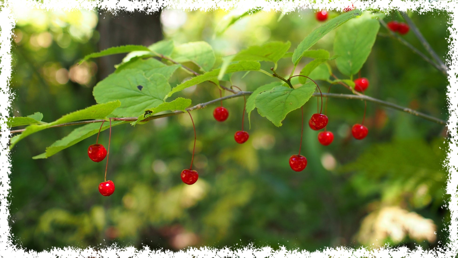 秋の森で出会う、風に揺れるフウリンウメモドキの愛らしい姿をTシャツにしました。