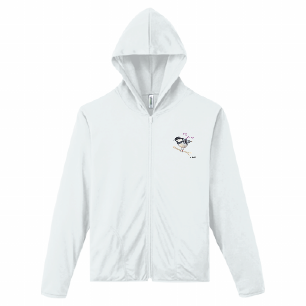 野鳥 ジップパーカー(ドライ) 【ヒガラ】(ホワイト)