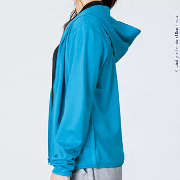 吸汗速乾のドライメッシュ素材を使った軽やかなジップパーカーです。